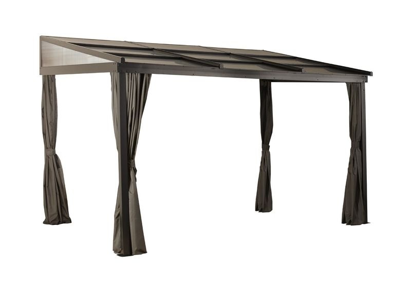 Hliníková pergola ke zdi vám vytvoří příjemné a útulné místo pro odpočinek hned vedle vašeho domu. Je opatřena moskytiérou a dlouhými závěsy, které vám v horkých letních dnech poskytnou stín i soukromí.