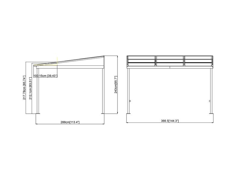 Montáž pergoly jednoduše zvládnete ve dvou. Jako podklad doporučujeme rovný povrch ze dřeva, betonu nebo dlažebních kostek. Kryt terasy musí být připevněn ke stěně ve výšce 242,5 cm. Sada šroubů pro ukotvení do země není součástí dodávky.