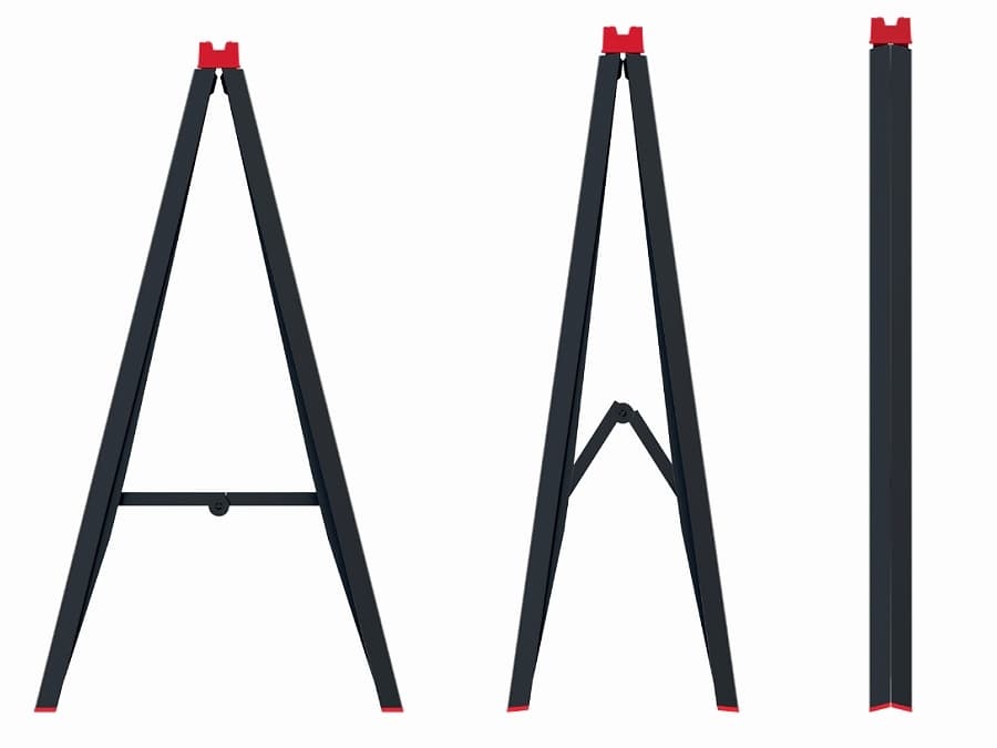 Die Traglast des Klappbocks beträgt 150 kg, bei Einsatz von zwei Stück kommt man bis auf die Tragfähigkeit von 350 kg. Im aufgeklappten Zustand sind die Stützen gesichert, damit der Gerüstbock bei der Arbeit stabil bleibt.