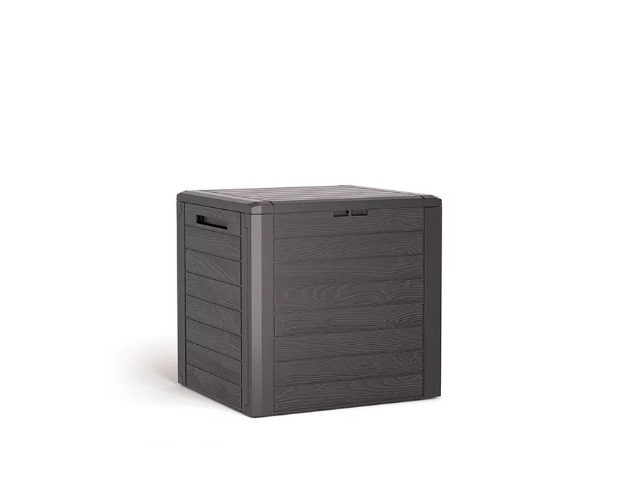 Die Aufbewahrungsbox überzeugt nicht nur durch ihre Funktion, sondern auch durch ihre dekorative Optik. Die Staubox in Dekor Holzimitation wirkt im Garten unauffällig und stört nicht den ästhetischen Eindruck Ihrer Außenräume.