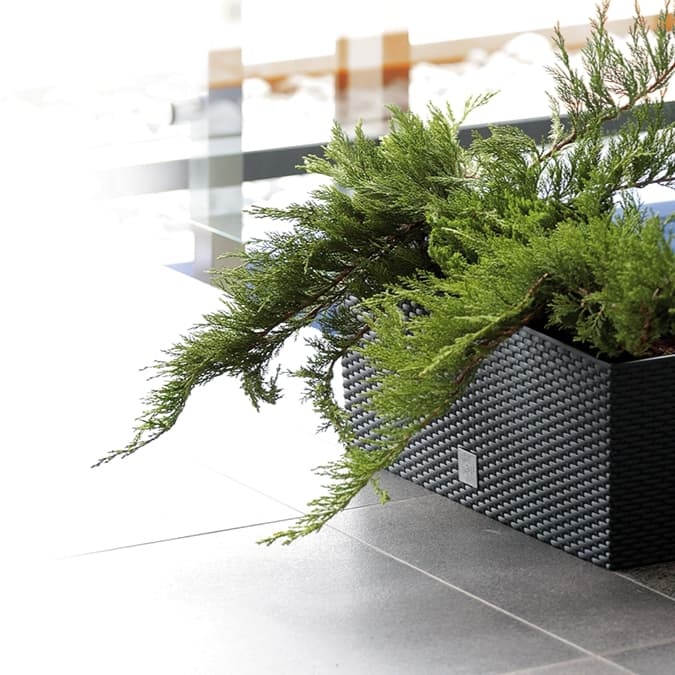 Der Kunststoffkasten passt auf Balkon, Veranda wie auch Terrasse. Mit dem exklusiven Look wird er zum geschmacksvollen Accessoire in jedem Innenraum. Aber man sieht ihn auch mit Grünpflanzen in öffentlichen Cafés, Restaurants und Gastgärten bzw. Lounges.