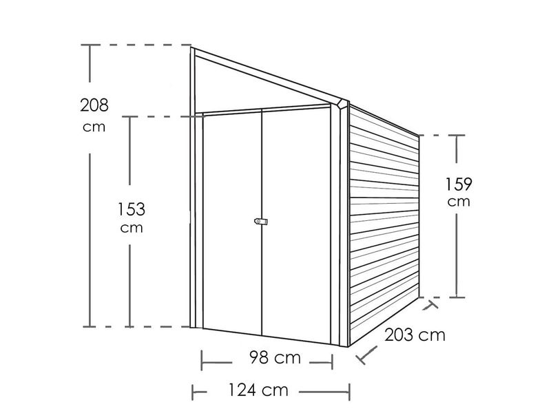 Das Blechgartenhaus ist aus elektrolytisch verzinktem Stahlblech gefertigt. Doppelte Klapptüren können an beiden Seiten des Schuppens montiert werden, was Ihnen flexible Möglichkeiten bei der Installation des kompletten Metallschuppens bietet. Eine Vorrichtung für ein Vorhängeschloss ermöglicht die Sicherung der gelagerten Ausrüstung (Vorhängeschloss nicht im Lieferumfang enthalten). So erhalten Sie im Garten einen sicheren Platz für Fahrräder.