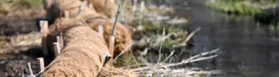 Für die Uferbefestigung eignen sich Kokoswalzen hervorragend in Kombination mit tiefwurzelndem Gewächs. Die Pflanzen, deren Wurzeln tief in den Boden reichen, übernehmen schrittweise die Matte des Erosionsschutzes entlang der Hänge an Wasserläufen.