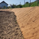 Beachten Sie: Wenn Sie den Hang mit Rasen begrünen möchten, verwenden Sie die Variante der Kokosmatten ohne Folie mit einem Flächengewicht von Geomat K-P 350 g/m², durch die das gesäte Gras problemlos wachsen kann. Die Variante Geomat K-P 600 g/m² ist stärker und eignet sich für größere Gefälle über 30°, die mit Bodendeckern bepflanzt werden. Die Variante Geomat K-PF 530 g/m² ist an der Unterseite mit einer schwarzen, undurchlässigen Folie versehen und wird als vorübergehender Schutz gegen Unkraut in Gebieten mit bodenbedeckender Bepflanzung eingesetzt. Als Alternative auf grasbewachsenen Böschungen können Kokosnetze Geomanet K EKO eingesetzt werden.