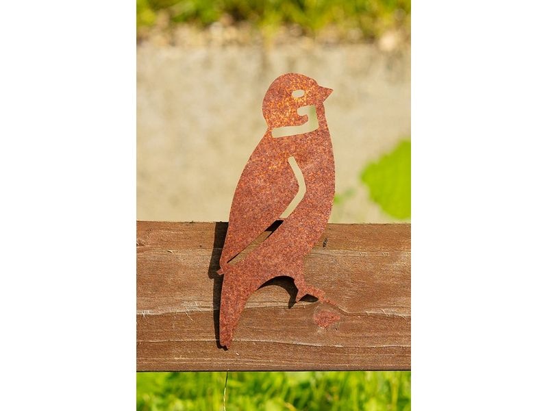 • Cortenstahl-Silhouette Spatz mit Montageplatte