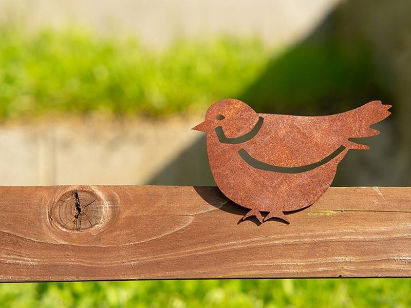 Siluette eines Spatzen aus Cortenstahl zur Verschönerung von Garten, Terrasse oder Zaun. Blechstärke 1 mm. Wartungsfreies Material mit einer Lebensdauer von über 20 Jahren.