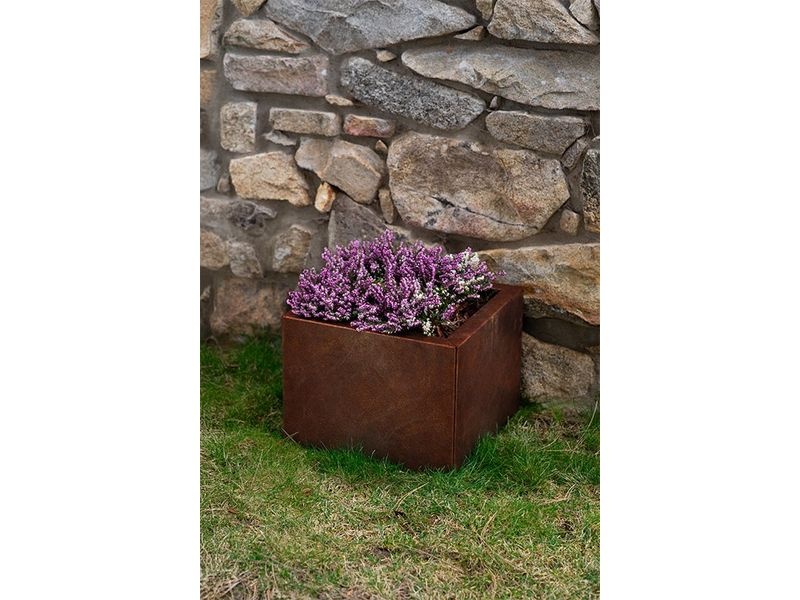 Hinweis: In der Anfangsphase kann rostiges Wasser austreten. Stellen Sie den Pflanzkübel zunächst auf Erde, Rasen, Kies oder eine temporäre Unterlage. Nach Stabilisierung der Patina kann er auch auf Pflaster oder Terrasse platziert werden.