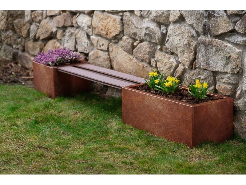 Die Konstruktion besteht aus 4 Seitenwänden aus original schwedischem COR-TEN®-Stahl mit doppelt umgebogener Oberkante, die für Stabilität sorgt und gleichzeitig einen sauberen Abschluss bildet.