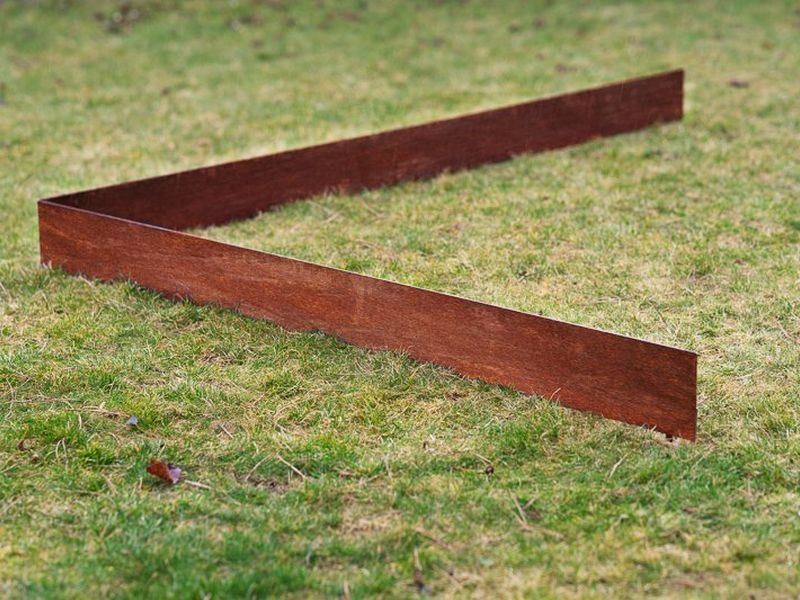 Cortenstahl-Beeteinfassung zur Trennung von Rasenflächen, Beeten, Wegen oder Steingärten. Verstärktes Blech mit 2 mm Stärke sorgt für höhere Steifigkeit und Stabilität auch auf längeren Strecken.