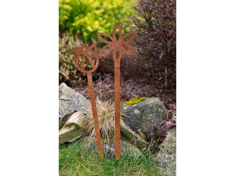 Dank des integrierten Metallspießes lässt sich die Gartendeko aus Cortenstahl einfach in Beete, Rasenflächen, Pflanzgefäße, Balkonkästen oder Steingärten stecken. Die Installation erfolgt sofort und ohne zusätzliche Befestigung.