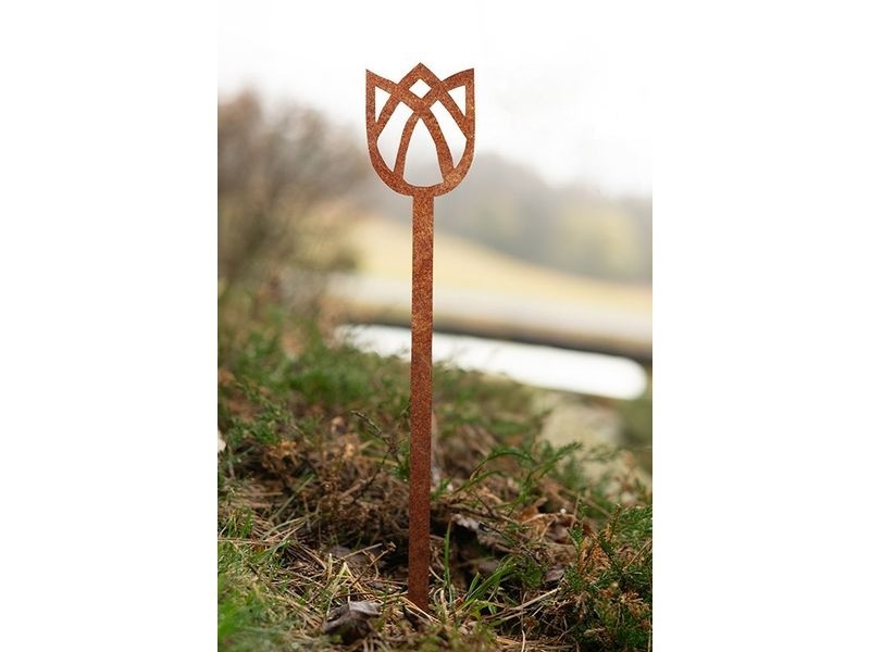 Die Cortenstahl Deko im Garten wirkt schlicht und zeitlos. Die filigrane Cortenstahl Dekoration in Form einer Tulpe überzeugt durch ihre typische schlanke Blütenform und fügt sich harmonisch in jede Umgebung ein.