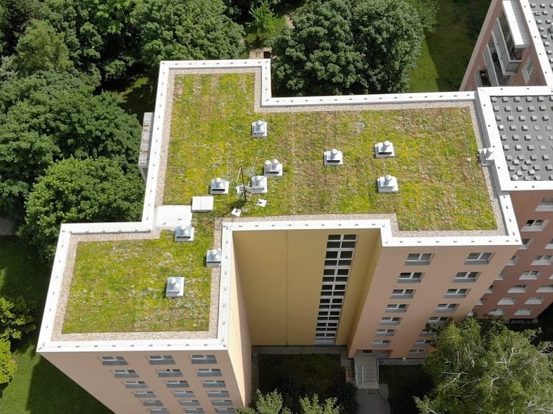 Die Drainageplatte mit Filtervlies erfüllt in der Schicht einer Dachbegrünung mehrere wichtige Funktionen: