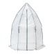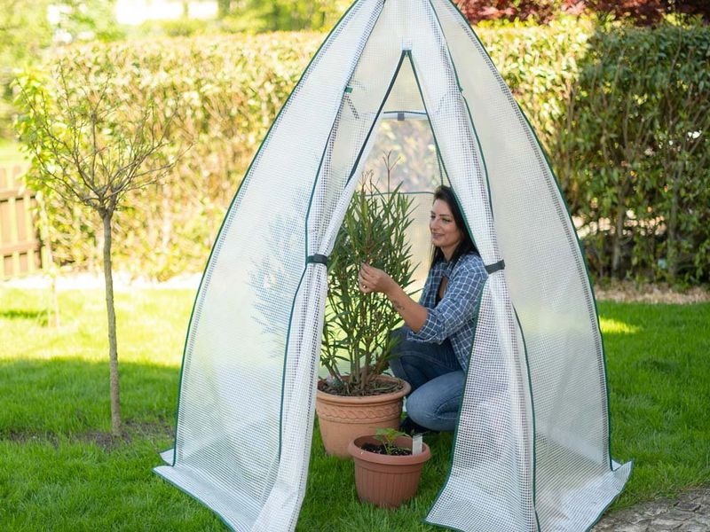 Die stabile Stahlkonstruktion ist mit einer robusten UV-stabilen Folie überzogen, die im Sommer vor direkter Sonneneinstrahlung schützt und im Winter als Isolierung gegen Frost dient. Die praktische Reißverschlusstür ermöglicht einen einfachen Zugang, und das integrierte Belüftungsfenster sorgt für eine gute Luftzirkulation im Inneren.