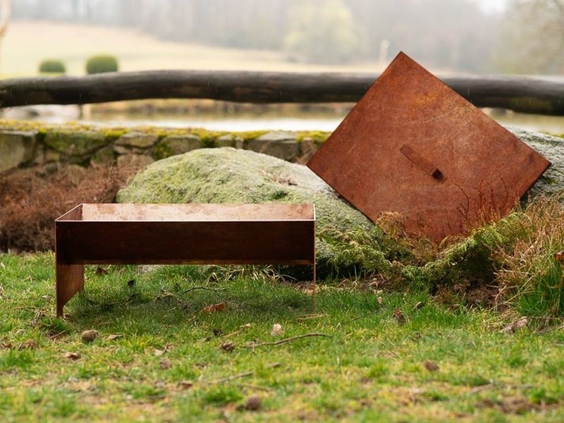 Auf der Oberfläche von COR-TEN®-Stahl bildet sich nach und nach eine natürliche rostige Patina, die vor weiterer Korrosion schützt und die Lebensdauer der Feuerschale verlängert.