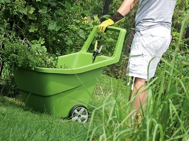 Gartenwerkzeug, Falllaub oder Kompost zu transportieren kann mühsam sein. Jedoch mit dem Gartentrolley können Materialien in einem Bruchteil der Zeit mengenweise befördert werden.