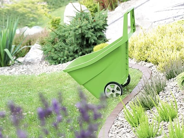Der Gartenwagen ist mit zwei Rädern und einem Kunststoffgriff ausgestattet. Daher lässt er sich ebenso gut schieben wie ziehen. Diese Gartenschubkarre ist wirklich leicht handzuhaben.