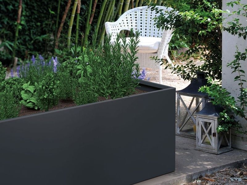 Er ist vielseitig einsetzbar und kann auch als Hochbeet genutzt werden. Das Gehäuse besteht aus pulverbeschichtetem Stahl, wodurch der Pflanztrog korrosionsbeständig ist und bei jedem Wetter verwendet werden kann.