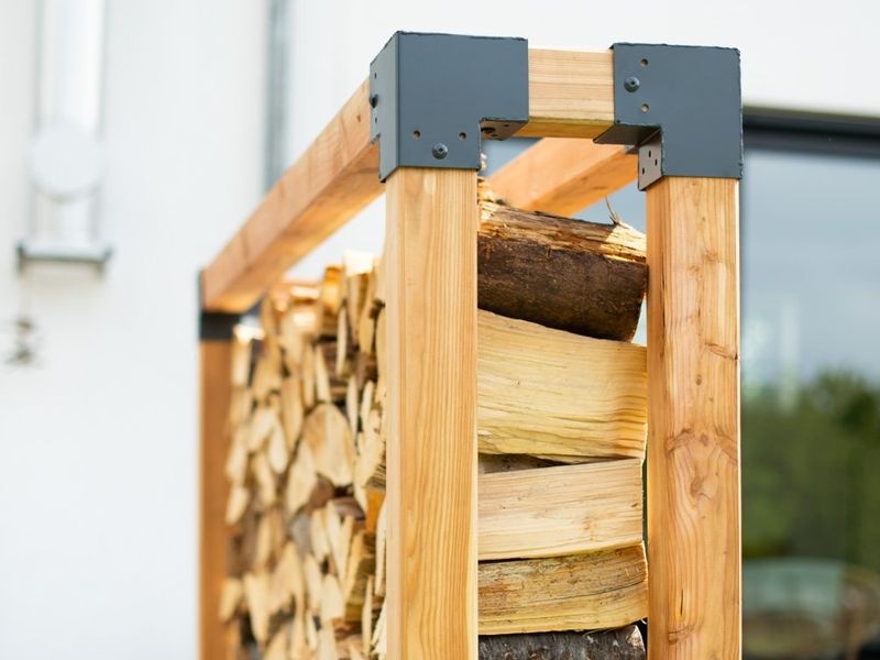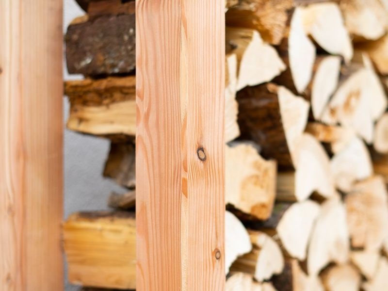 Holzstapelhalter Michel 2 hilft Ihnen, Ihr Brennholz einfach und ordentlich zu lagern. Diese moderne und funktionale Lösung besteht aus FSC®-zertifiziertem Lärchenholz, das für seine hohe Widerstandsfähigkeit und Langlebigkeit bekannt ist. Durch sein natürliches Erscheinungsbild und die robuste Konstruktion fügt sich der Holzhalter harmonisch in jeden Garten ein.