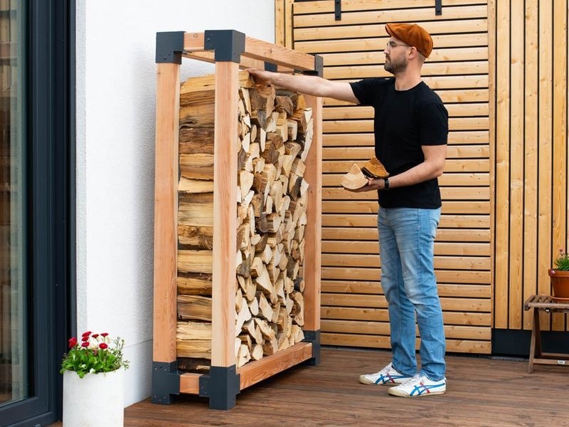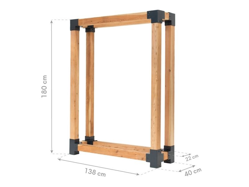 Holzstapler Michel 3 hilft Ihnen, Ihr Brennholz ordentlich zu lagern und dient zugleich als ästhetisches Element in Ihrem Garten. Er besteht aus FSC®-zertifizierter Lärche – einem der widerstandsfähigsten heimischen Hölzer, das für seine Langlebigkeit und Pflegeleichtigkeit bekannt ist.