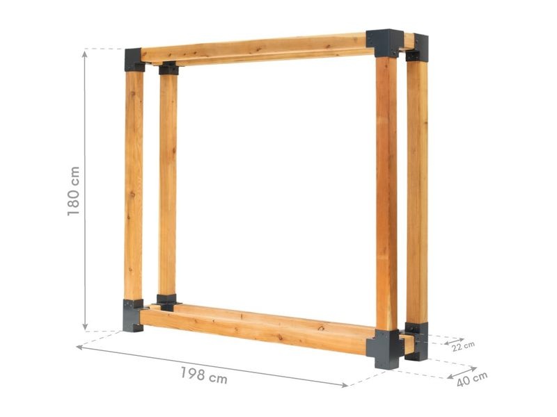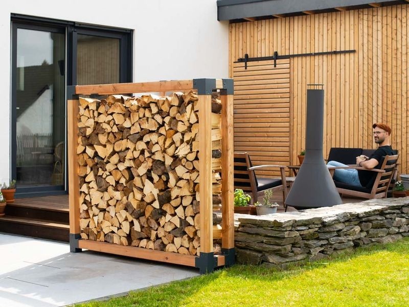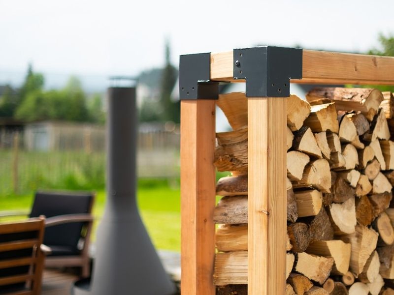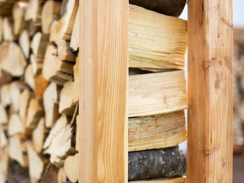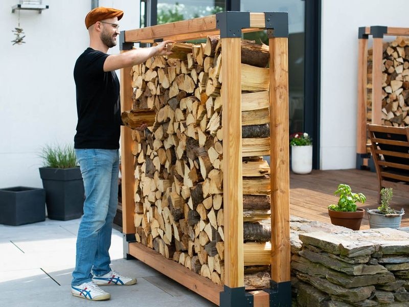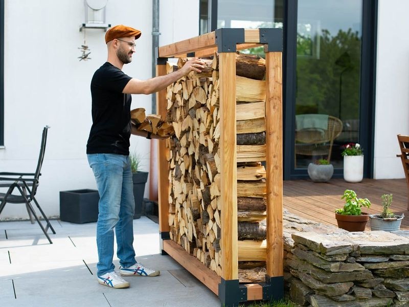 Die stabile Konstruktion mit Balkenstärken von 9×9 cm und Stahlverbindern sorgt für hohe Stabilität – auch bei voller Belastung. Die offene Bauweise ermöglicht eine optimale Luftzirkulation, wodurch Holzscheite mit einer Länge von 25–40 cm schnell trocknen können. Dank seines natürlichen Erscheinungsbilds und klaren Designs kann Michel 4 nicht nur als Holzlager, sondern auch als praktischer Sichtschutz oder dekoratives Gartenelement verwendet werden.