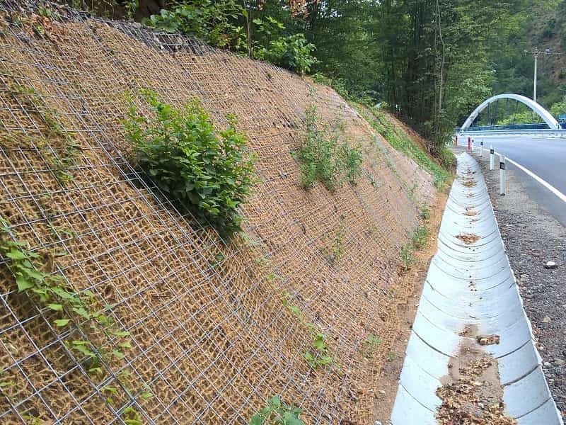 Nach Ablauf der funktionalen Lebensdauer dient das Kokosgewebe als natürlicher Dünger. Es fördert somit das Pflanzenwachstum bis zu 5 Jahren. Die Pflanzen im Boden unter dem eingebauten Netz werden weder eingeschränkt noch beschädigt. Größere Sträucher und kleinere Pflanzen, mit denen die geschützte Böschung bepflanzt wird, können durch das angeschnittene Kokosnetz durchgezogen werden.