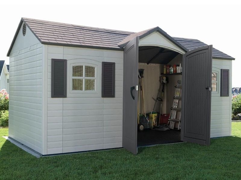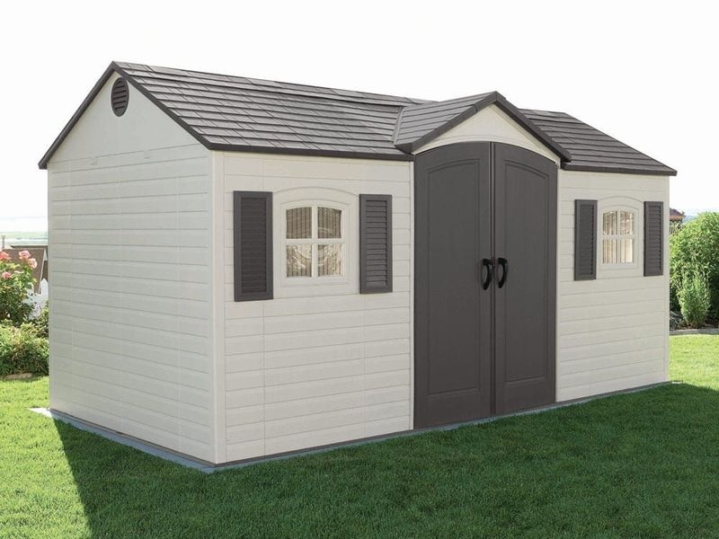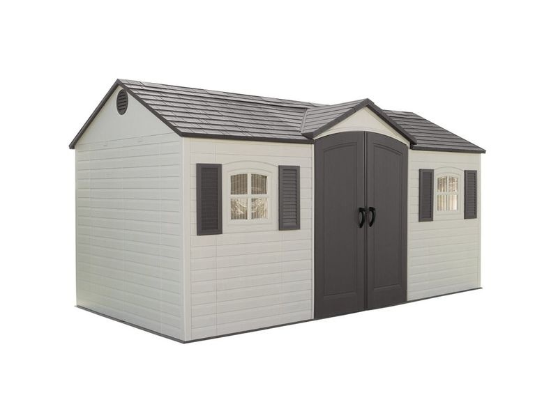 Die Dachneigung dieses Modells beträgt 30 Grad, was die Ansammlung und den Druck von Schnee auf die Dachkonstruktion erheblich reduziert. Das Gartenhaus ist außerdem mit doppelten Schwenktüren ausgestattet, die für mehr Komfort bei der Lagerung von Werkzeugen und anderen Gegenständen sorgen.