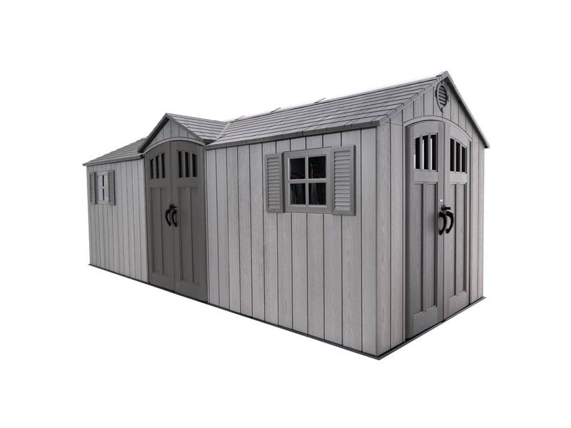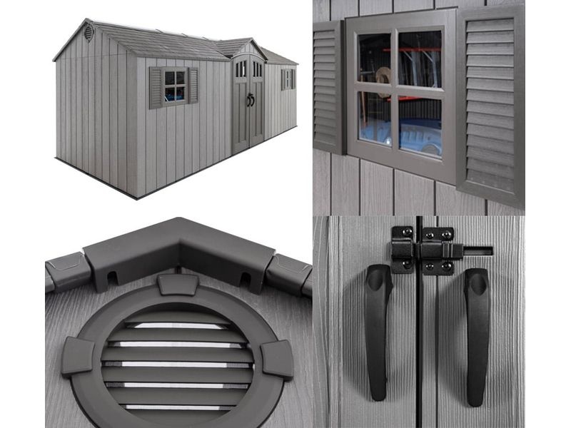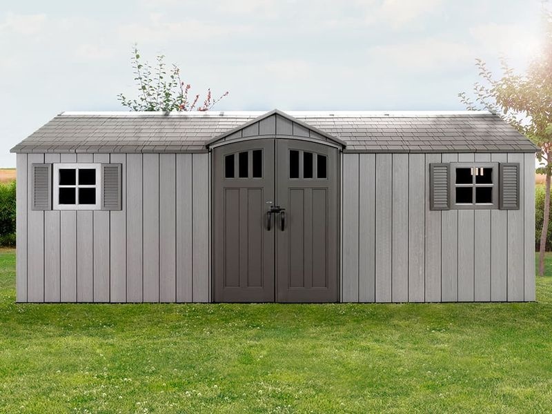 Zum Lieferumfang gehören auch große Doppelflügeltüren, die einen leichten Zugang und eine einfache Lagerung Ihres Equipments ermöglichen. So können Sie auch breitere Gartengeräte problemlos verstauen.