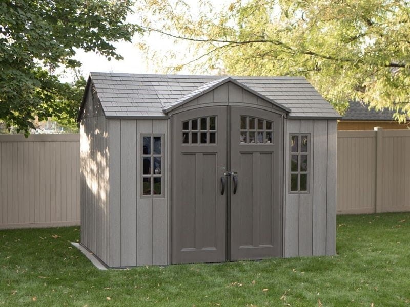 Zum Lieferumfang gehören auch große Doppelflügeltüren, die einen leichten Zugang und eine einfache Lagerung Ihres Equipments ermöglichen. So können Sie auch breitere Gartengeräte problemlos verstauen.