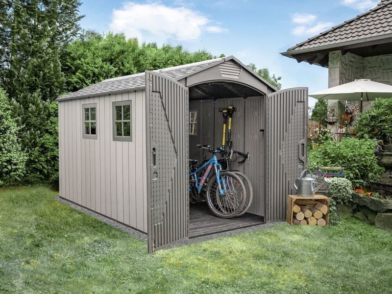 Zum Lieferumfang gehören zudem große Doppelflügeltüren, die einen einfachen Zugang und eine bequeme Einlagerung Ihrer Geräte ermöglichen. So können Sie auch breiteres Gartenzubehör problemlos unterbringen.