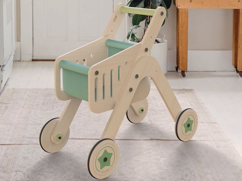 Der Trio Shopper von MamaToyz ist ein kombinierter Einkaufswagen und Lauflernwagen, ideal für die ersten Schritte und kreatives Spielen. Mit seinem großzügigen Stauraum für Spielzeug und Miniaturlebensmittel fördert er die motorischen Fähigkeiten und regt die Fantasie Ihres Kindes an. Die hölzernen Räder sind verstellbar, um die Geschwindigkeit zu kontrollieren, während die gummierten Reifen für besseren Halt sorgen.