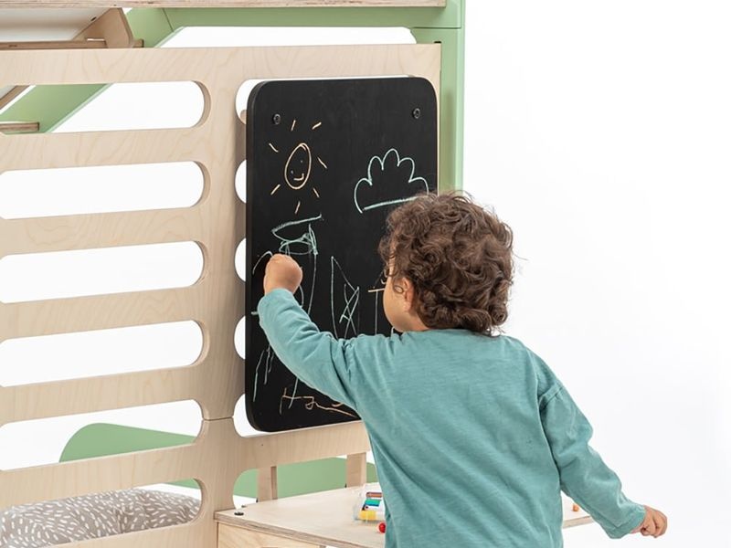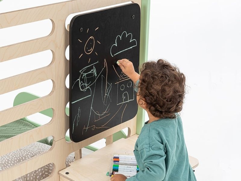 Das Montessori Bett Sleepy von mamatoyz unterstützt deinen kleinen Entdecker beim selbstbestimmten Heranwachsen. Durch das passgenaue Zubehör erweiterst du mit wenigen Handgriffen die Möglichkeiten: Der Schreibtisch ist einfach zu befestigen, und bietet deinem Kind einen Rückzugsort für künstlerische Aktivitäten oder Schulaufgaben. Die Schaukel sorgt für luftige Abwechslung während der künstlerischen Stunde oder einer ausgelassenen Kletterpartie.