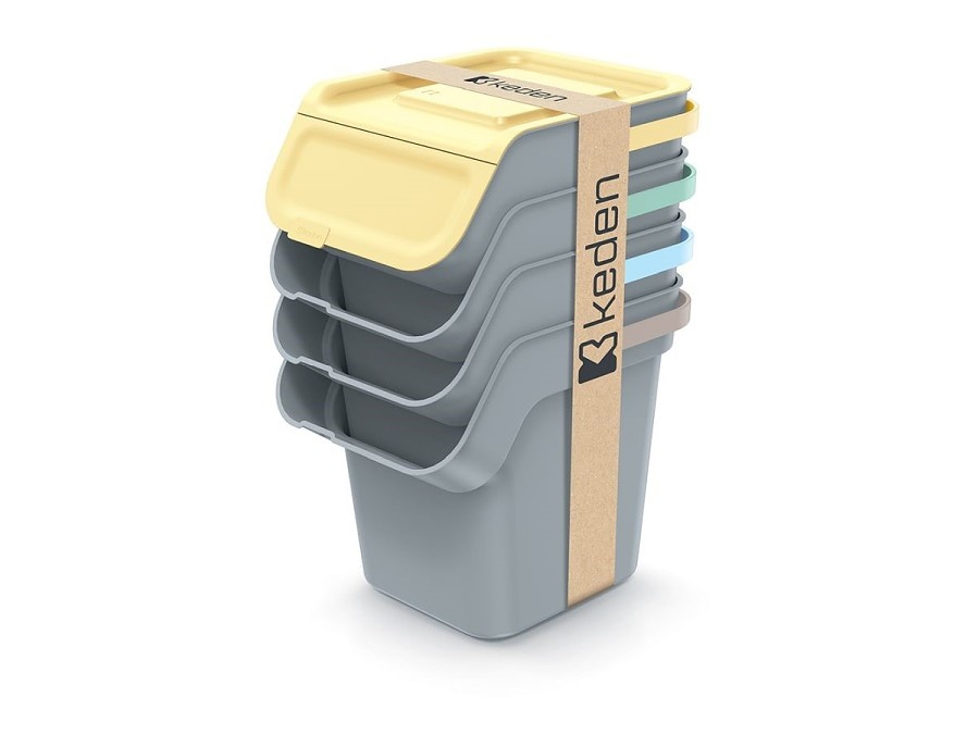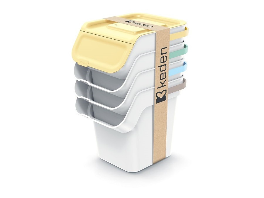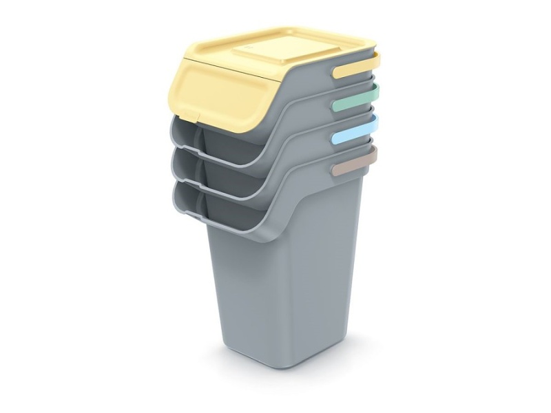 Die Abfalleimer sind stapelbar, sodass sie nicht viel Platz brauchen. Die Kübeldeckel sind farblich unterschieden, um sofort zu wissen, wohin der Abfall gehört.