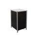 Die Box besteht aus einem feuerverzinkten Stahlrahmen und Aluminium-Verbundplatten. Die Materialien sind witterungsbeständig, regen- und feuchtigkeitsresistent und erfordern keine aufwendige Pflege.
