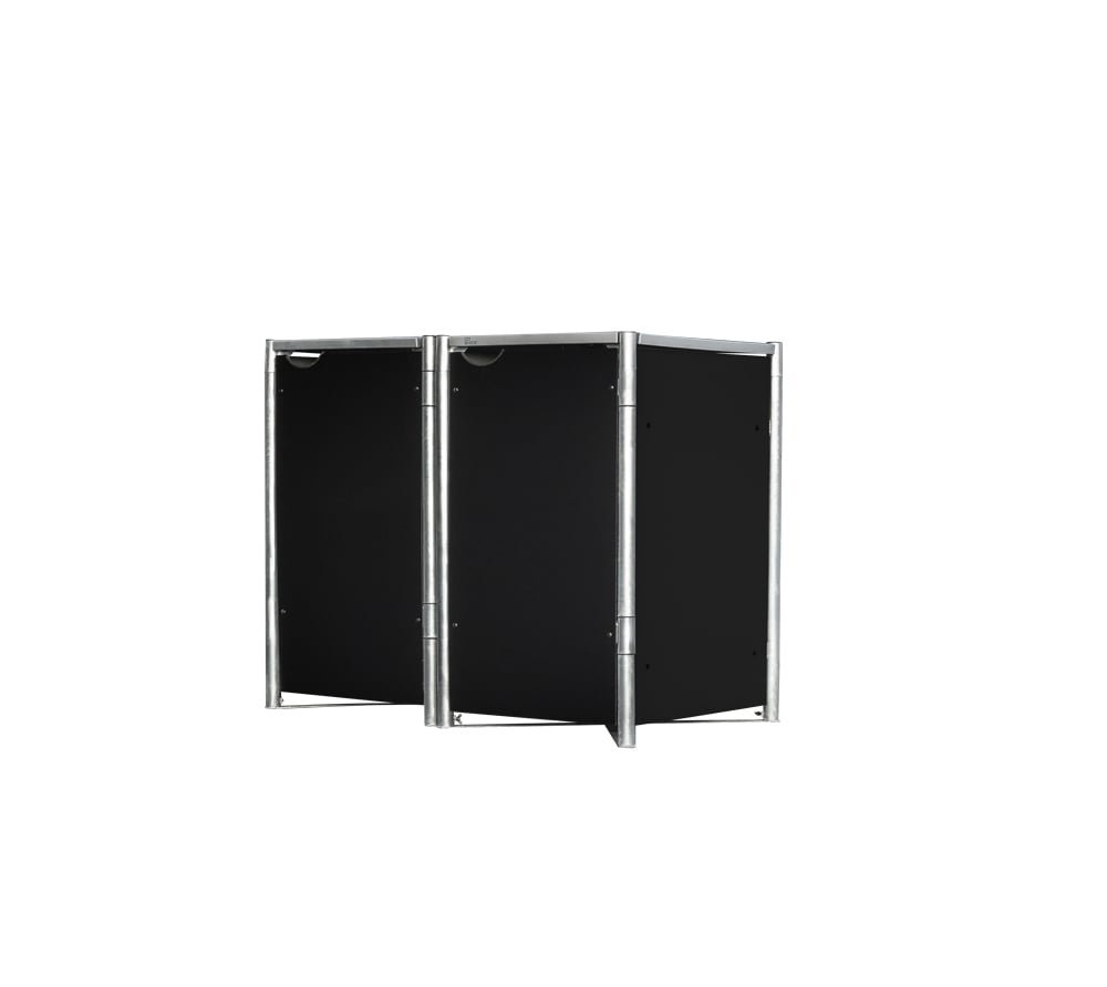 Die Metall-Mülltonnenbox Hide ist eine praktische Lösung zur Aufbewahrung einer Mülltonne mit 240 l Volumen. Durch das elegante schwarze Design passt sie zu jedem Haus oder Garten und schützt die Tonne zugleich vor Witterung und Feuchtigkeit.