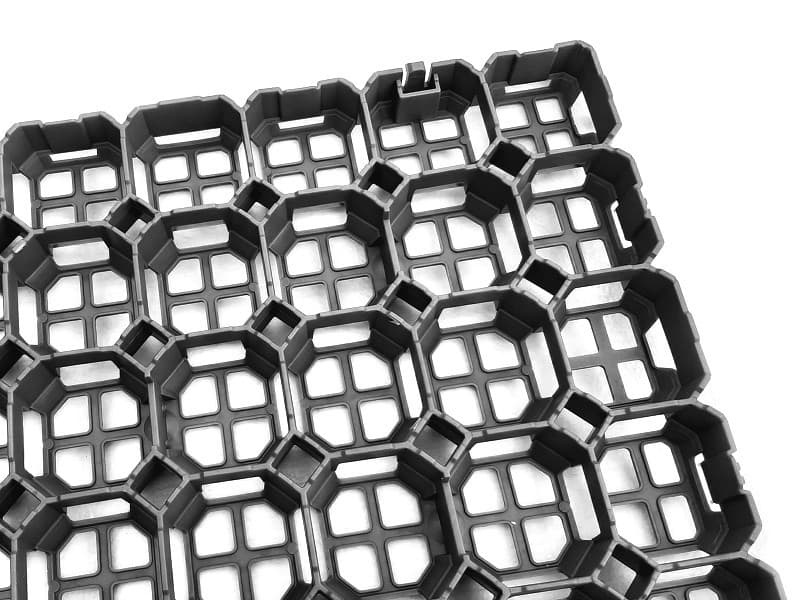 Diese Kunststoffplatten sind ideal zum Auffüllen mit Kies. Die einzigartige Zellstruktur verhindert das Einsinken des Kieses in den Untergrund. Zellwandstärke = 4 mm (±1,5 mm). Beim Auffüllen wird der Kies besser zwischen den Zellwänden gehalten, wodurch das Risiko einer Verlagerung des Kiess verringert wird.