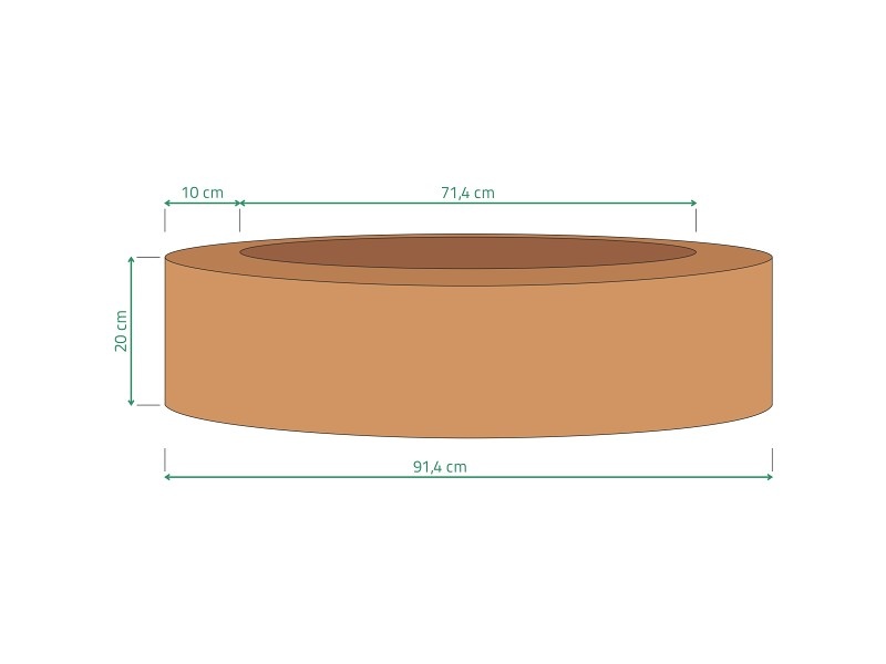 Die Garten-Feuerschale ist aus Stahl gefertigt, der extrem beständig gegen schlechte Witterungsbedingungen ist. Auf der Materialoberfläche bildet sich mit der Zeit eine charakteristische rostige Patina, die Korrosion verlangsamt.