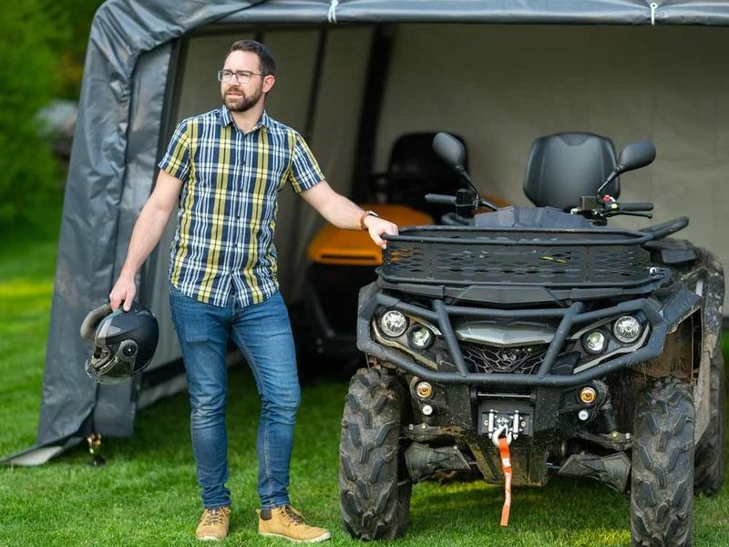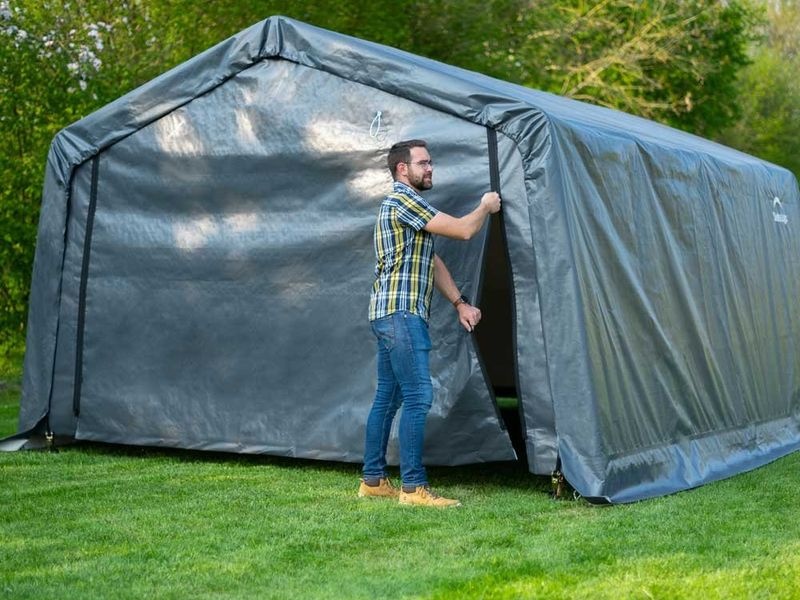 Diese Allzweck-Garage ist die meist verkaufteste portable Garage Nordamerika`s und bestens für Autos, Motorräder, Anhänger und Rasenmähertraktoren geeignet. Sie ist schnell auf- und abbaubar und somit optimal für den saisonalen aber auch für den ganzjährigen Gebrauch geeignet.
