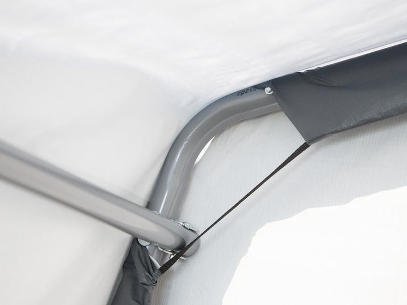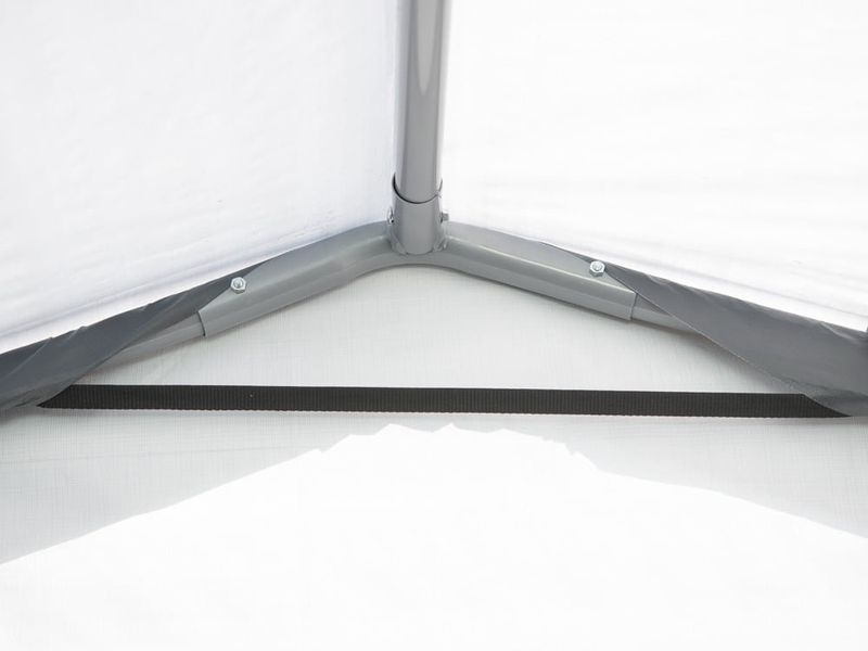 Die hochwertige, stabile Plane aus Polyethylen (160g/m²) ist UV-beständig und durch eine spezielle Versiegelung sowie eine nahtlose Verarbeitung absolut wasserdicht. Das 3,5cm starke, massive und zusätzlich Premium beschichtete Stahlgestell (5 Rippen) ist beständig gegen Rost und absolut witterungsbeständig. So ist eine hohe Lebensdauer garantiert. Patentierte Stabilisatoren (ShelterLogic® 3X Steel Stabilizers) gewährleisten eine 3× höhere Belastbarkeit der Konstruktion.