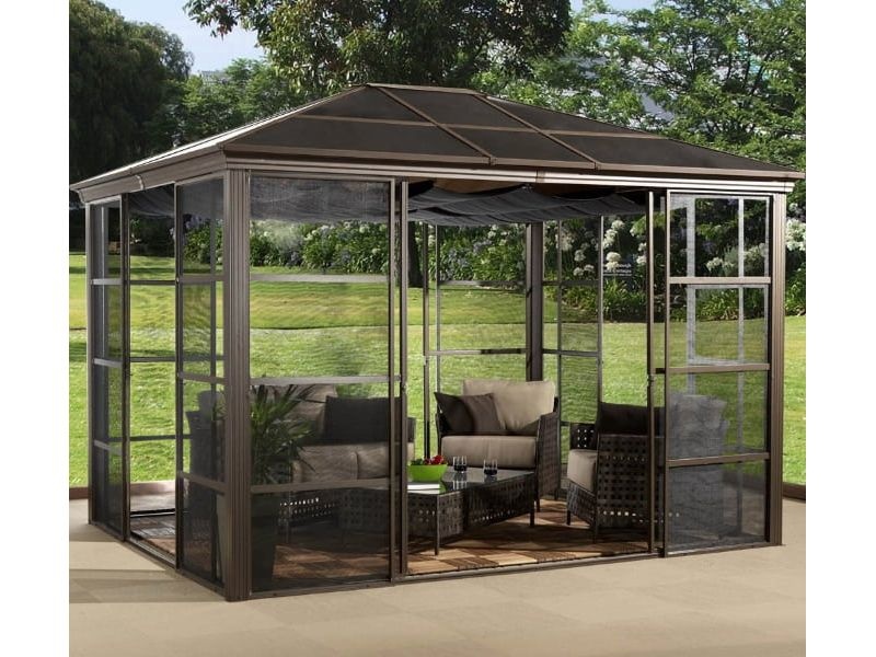 Einzigartige Eleganz trifft auf Funktionalität! Der Pavillon Castel 1012 von Sojag wird inklusive Moskitonetzen & Sonnenschutz geliefert und bietet nicht nur Schutz, sondern auch einen Hauch von Luxus sowie Komfort für deinen Garten.