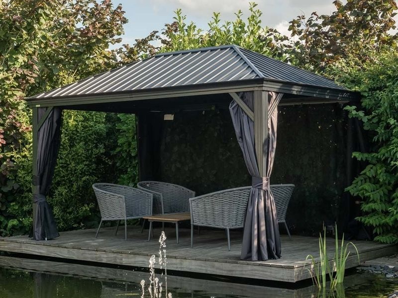 Der Aluminium-Gartenpavillon schafft einen angenehmen und gemütlichen Rückzugsort, direkt neben Ihrem Haus oder überall im Garten. Er ist mit einem Moskitonetz ausgestattet, das Sie an warmen Sommerabenden zuverlässig vor Mücken schützt.