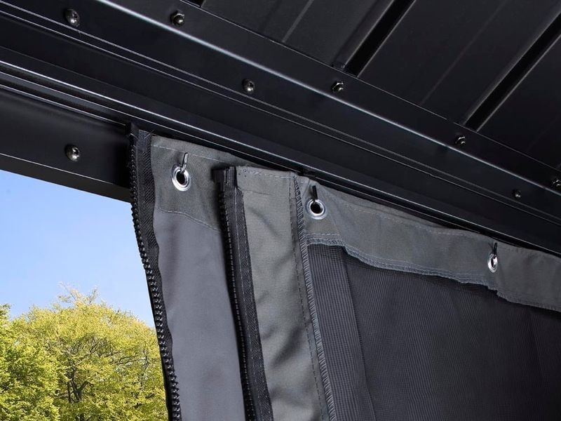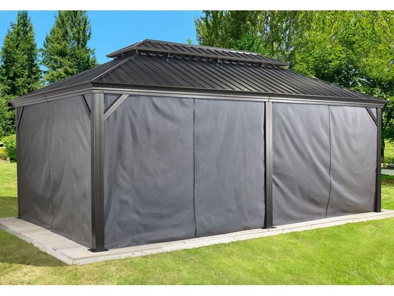 Der Pavillon Messina kommt in edlen Anthrazit Farbton. Optisch passende Vorhänge (Dunkelgrau) separat erhältlich.