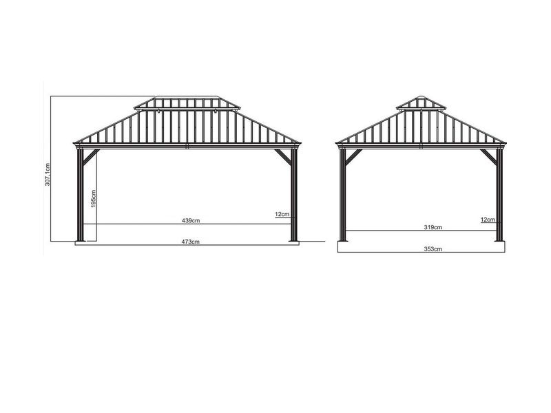 Außergewöhnliche 150kg/m² Schneelast und alle Aluminiumteile dauerhaft rostfrei! Die galvanische Beschichtung hält sämtlichen Witterungen ob Regen, Schnee oder Sonne ohne Probleme Stand. Das gleiche gilt für die massive Konstruktion aus resistentem, pulverbeschichtetem Aluminium (Pfostenstärke 12cm). Selbst die Schrauben bestehen aus rostfreiem Edelstahl. Der Pavillon muss daher im Winter nicht abgebaut werden.