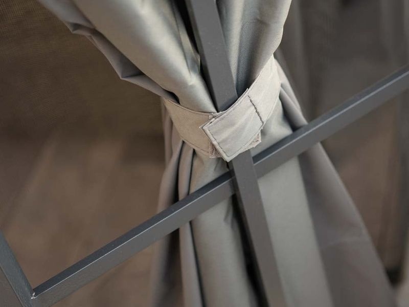 Als Untergrund für den Pavillon empfehlen wir eine ebene Fläche aus Holz, Beton oder Pflastersteinen. Ein Schraubenkit zur Verankerung am Boden wird nicht mitgeliefert.