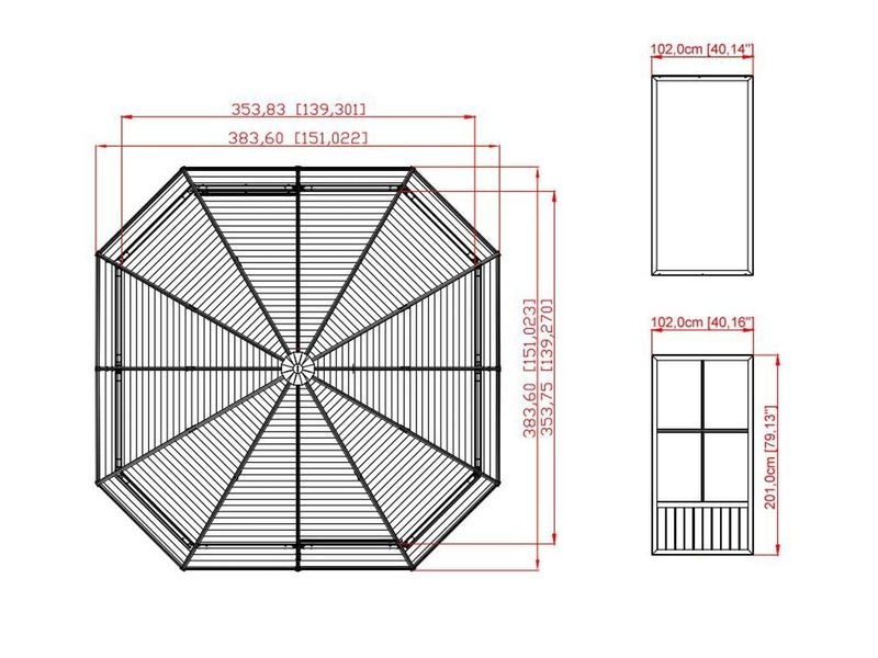 Der Gartenpavillon besteht aus hochwertigsten Materialien, die korrosionsbeständig sind. Die Konstruktion besteht aus robustem, pulverbeschichtetem Aluminium und wird mit Edelstahlschrauben verbunden – das sorgt für ein besonders stabiles Grundgerüst.