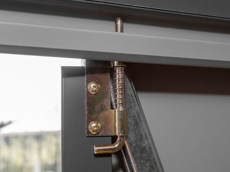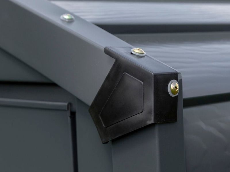 Der Schuppen besteht aus elektrolytisch verzinktem Stahlblech. Die doppelflügelige Tür kann auf beiden Seiten des Schuppens montiert werden, was Ihnen flexible Möglichkeiten bei der Installation des gesamten Metall-Schuppens bietet. Eine Vorrichtung für ein Vorhängeschloss ermöglicht es, das gelagerte Equipment sicher zu verstauen (Vorhängeschloss nicht im Lieferumfang enthalten). Dadurch erhalten Sie einen sicheren Platz für Fahrräder in Ihrem Garten.