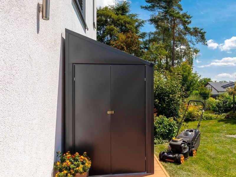 Der Gartenschuppen kombiniert alle Vorteile einer extrem robusten Konstruktion aus verzinktem Stahlblech mit einer zeitlosen und modernen Farbe, die sich dezent in jede Umgebung einfügt. Im Gegensatz zu Holzschuppen erfordert dieser Blechschuppen keine regelmäßige Pflege oder Wartung.