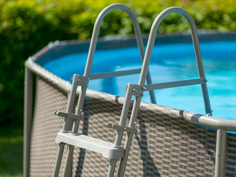 Das Rahmengestell des Aufstellpools besteht aus verzinkten Stahlrohren. Die Außenwand ist in Rattanoptik gehalten und fügt sich harmonisch in nahezu jeden Garten ein.