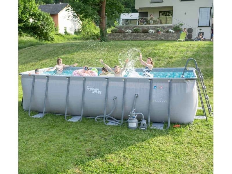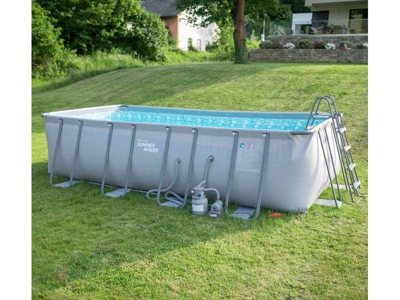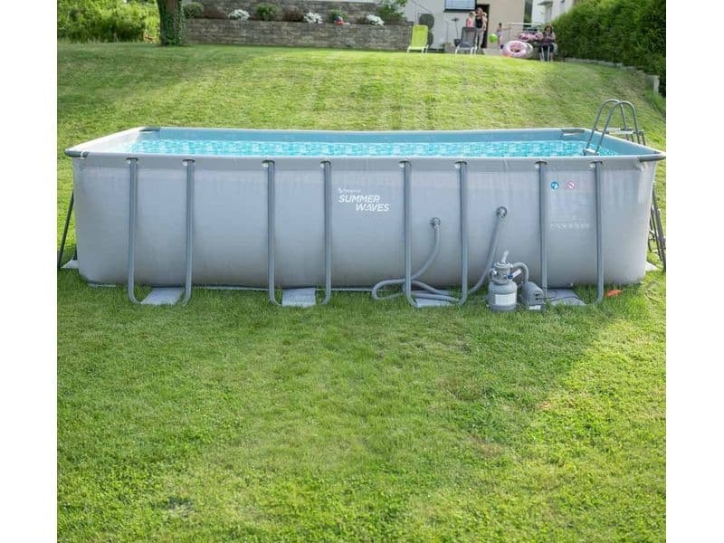 Das Fassungsvermögen bei 90 % Befüllung beträgt 17 871 Liter. Der Pool bietet Platz für bis zu 7 Personen. Dieses Modell kombiniert die Vorteile von Aufstellpools und im Boden eingelassenen Pools: Er ist nicht nur einfach aufzubauen und zu versetzen, sondern zugleich robust und stabil.