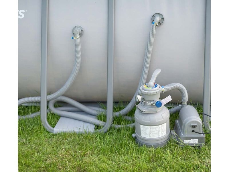 Alles Wichtige im Grundset enthalten. Die Pools werden inklusive Filteranlage, Abdeckplane und Leiter geliefert. Damit umfasst das Basispaket sämtliche Komponenten, die Sie für den Start und die weitere Nutzung benötigen. Pool aufbauen, mit Wasser befüllen – und fertig!