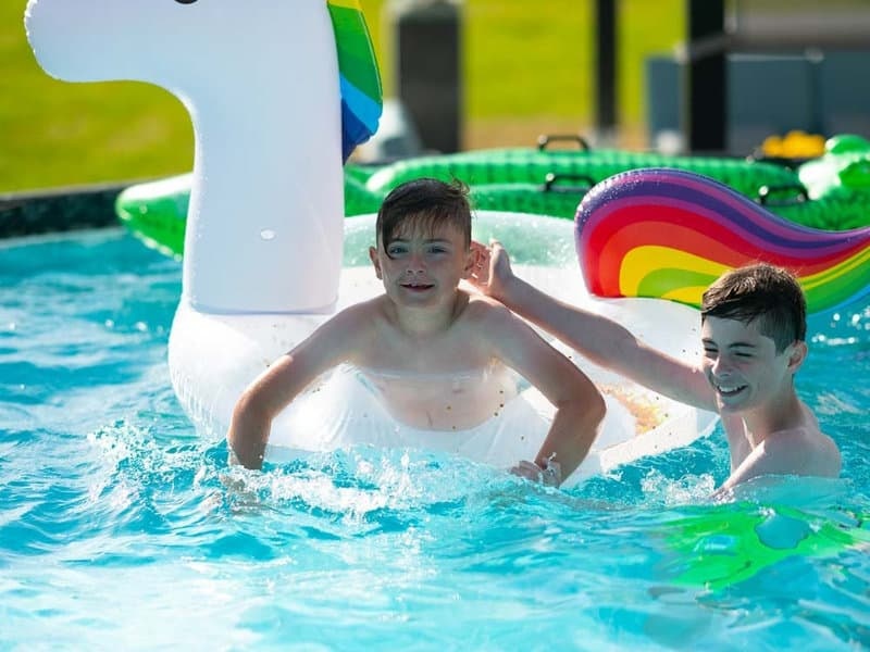 Die Kapazität bei 90 % Füllstand beträgt 27 406 Liter. Der Pool bietet Platz für bis zu 8 Personen. Dieses Modell vereint die Vorteile von Aufstellpools und versenkten Pools: Es ist nicht nur leicht aufzubauen und zu versetzen, sondern zugleich auch robust und stabil.